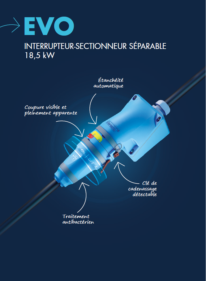 - Sécurisation des interventions → EVO se sépare en deux parties, garantit la coupure et permet un cadenassage en toute sécurité, même sans personnel habilité.