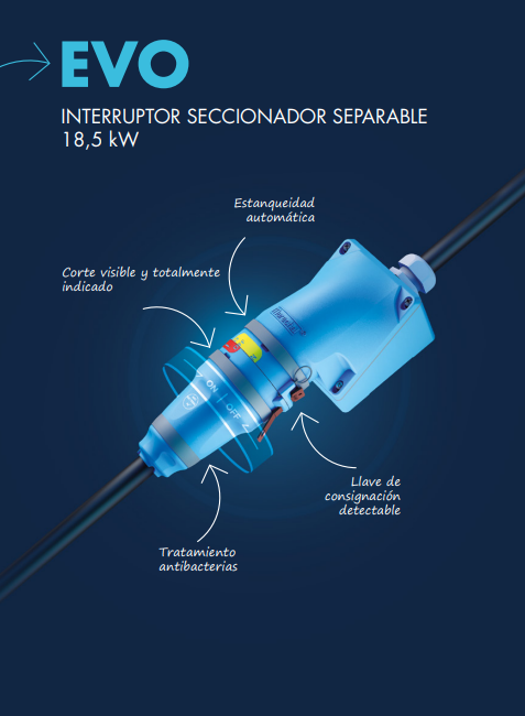 - Seguridad en las tareas de mantenimiento → EVO se separa en dos partes, garantiza el corte y permite el bloqueo con candado de forma segura, incluso sin personal especializado.