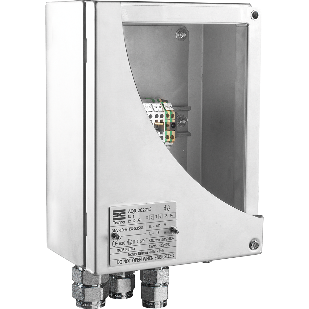 COFRES equipados con seguridad aumentada – IIC – IP66 – IK10 – 7J – ALUMINIO/INOX – Zona 1-21, 2-22